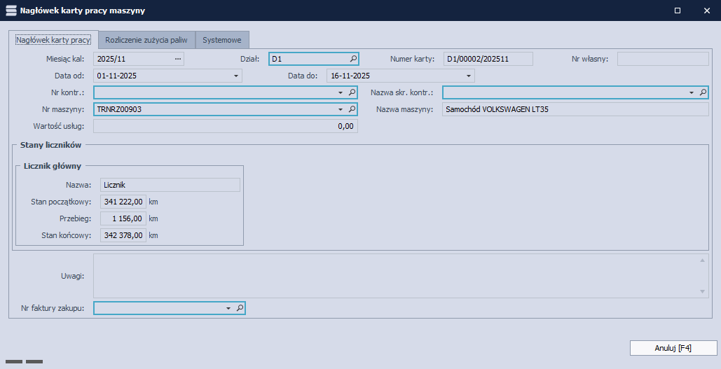 Ewidencja paliwa i kosztów